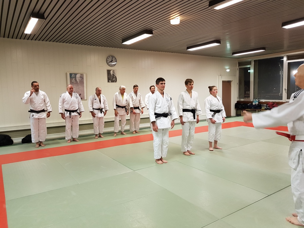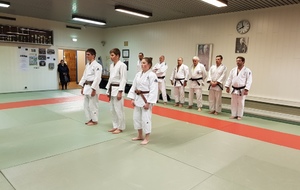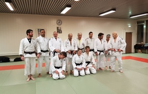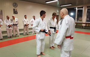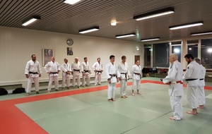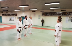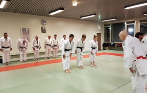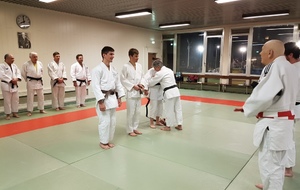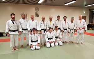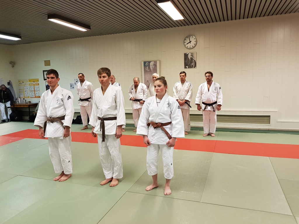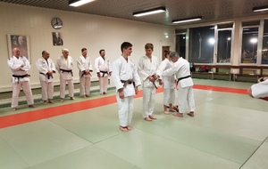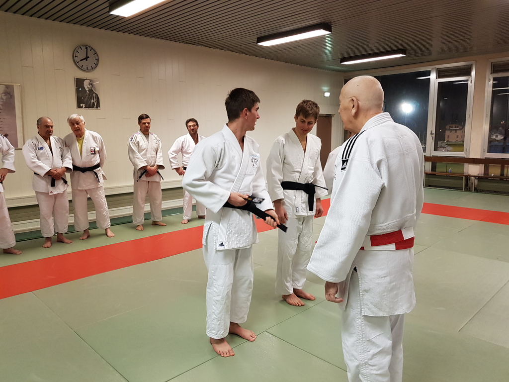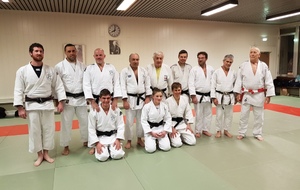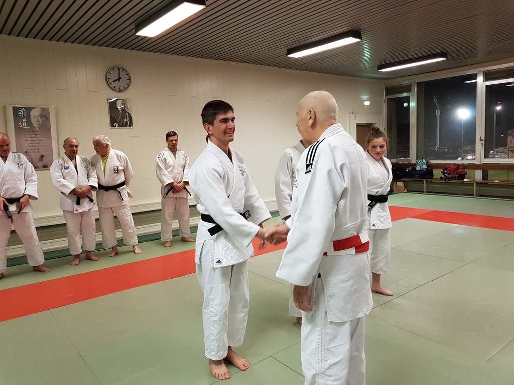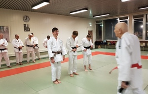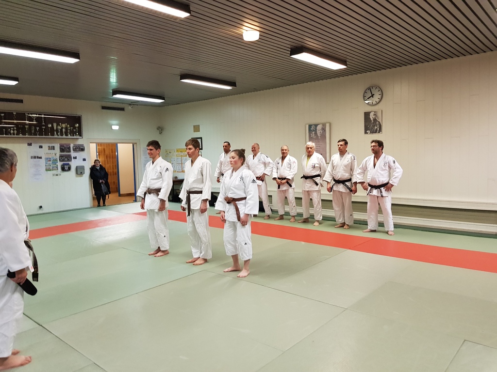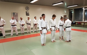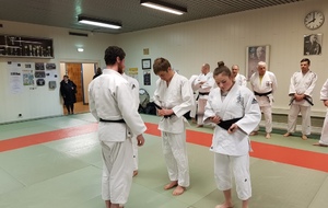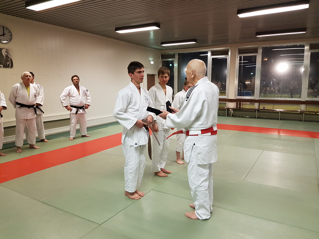 Ainsi, Zoé Jacquier, Tristan Veyrat et Corentin Gosselin ont reçu des mains de Bruno Hamon (4ème dan), Adrien de Tapia (4ème dan) et André Guérin (7ème dan) leur 1er dan, symbole de commencement dans le monde du judo.